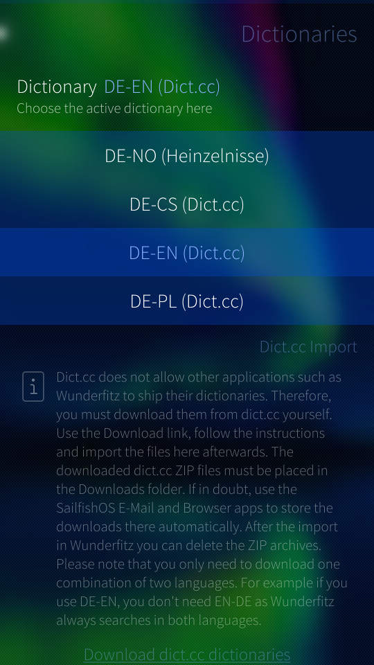 Wunderfitz supports dict.cc dictionary export files and already includes the Heinzelnisse Norwegian-German dictionary (heinzelnisse.info) - fast and easy-to-use!